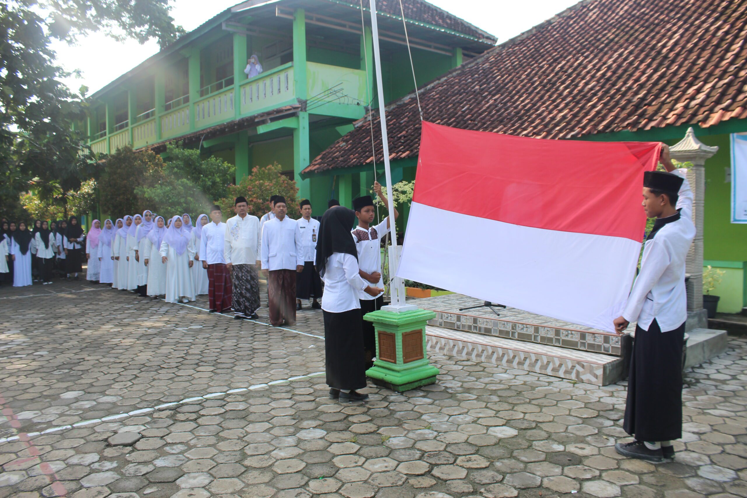 Grobogan – MTsN 3 Grobogan menggelar perayaan Hari Santri dengan penuh khidmat dan semangat kebersamaan pada hari Senin (22/10). Rangkaian acara dimulai dengan upacara bendera yang dipimpin langsung oleh Kepala Madrasah, Bapak Nurhadi, yang dalam amanatnya menekankan pentingnya meneladani semangat juang santri dalam mempertahankan keutuhan bangsa.